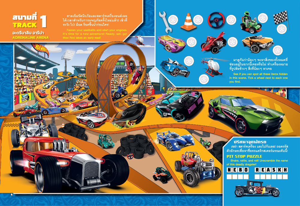 ค้นหารถฮอตวีลส์สุดซิ่งและวัตถุที่ซ่อนอยู่ภายในฉากที่อัดแน่นไปด้วยขุมพลัง ติดตามการผจญภัยสุดขั้วนี้ไปกับการแข่งขันรถฮอตวีลส์ระดับโลก ใครจะได้เป็นแชมป์กัน? หนังสือเกมค้นหาภาพเล่มนี้จะทำให้แฟนๆ ฮอตวีลส์ทั้งในและนอกสนามแข่งเต็มอิ่ม! คาดเข็มขัดให้แน่นล่ะ เพราะนี่จะเป็นการแข่งที่ดุเดือด! หนังสือเล่มนี้ช่วยส่งเสริม EQ ความฉลาดทางอารมณ์ ส่งเสริม CQ ความฉลาดในการแก้ปัญหา