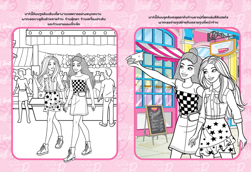 Barbie สนุกกับเกมและภาพระบายสีแสนสวย Malibu Festival + เครื่องคิดเงินพร้อมรถเข็นช้อปปิ้ง