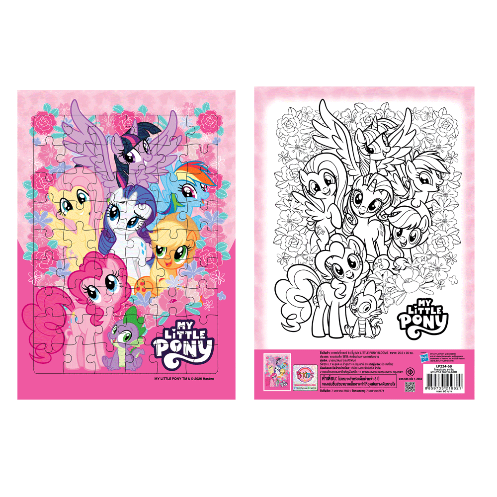 สนุกสนานไปกับจิ๊กซอว์ MY LITTLE PONY 54 ชิ้น Blooms พร้อมภาพระบายสี ช่วยฝึกทักษะด้านการสังเกต การจดจำ ฝึกสมาธิ และส่งเสริมความคิดสร้างสรรค์